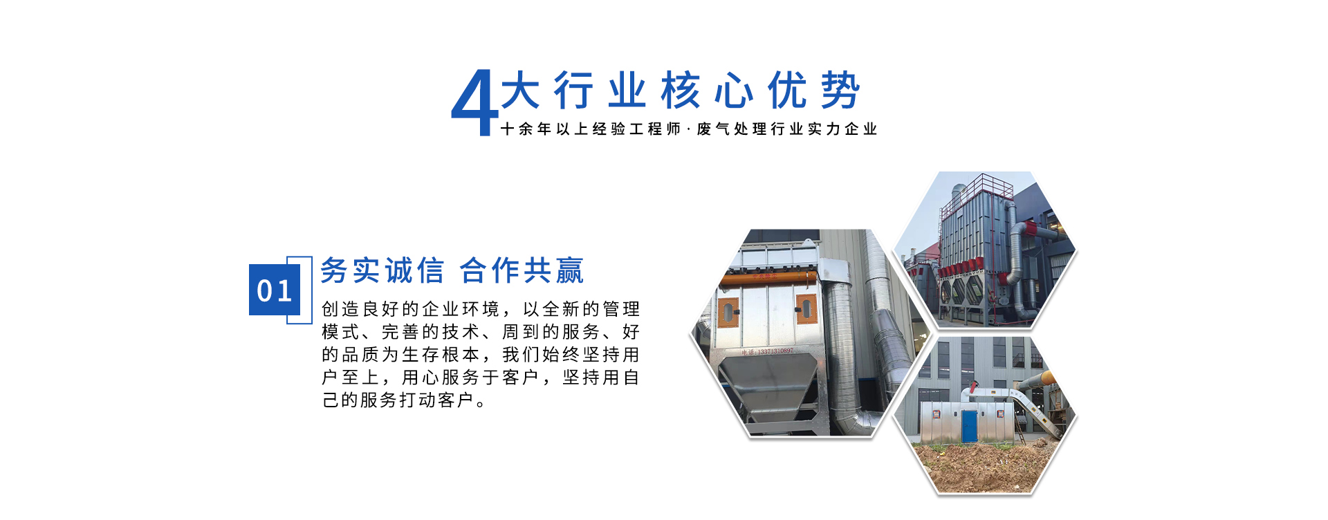 公司自成立以來,始終專注于工業(yè)廢氣、污水、粉塵等環(huán)境污染的治理,先后研發(fā)出催化燃燒設(shè)備、光氧催化廢氣處理設(shè)備、低溫等離子廢氣處理設(shè)備、粉塵處理-體化設(shè)備等一系列環(huán)保設(shè)備,產(chǎn)品先后通過ISO901質(zhì)量管理體系認(rèn)證、中國環(huán)境保護(hù)產(chǎn)品認(rèn)證。